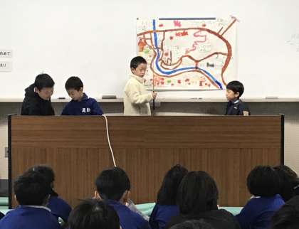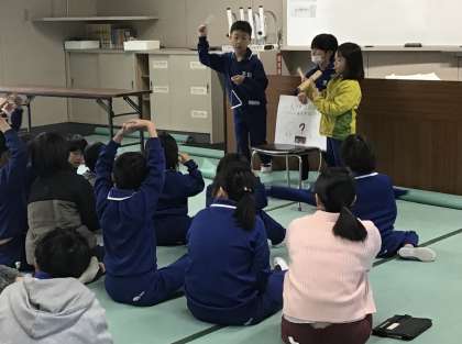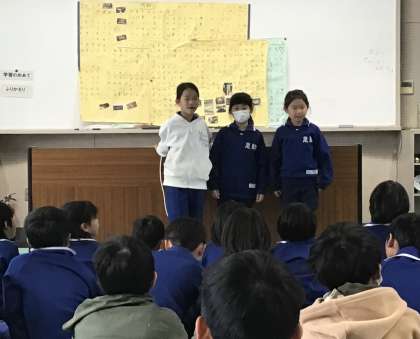2年生 生活科「足助のお宝発表会」 1 公開日 2024/12/06 更新日 2024/12/06 各学年から 12月6日(金)、2年生が1年生や6年生を招いて、「足助のお宝発表会」を行いました。 今まで実際に行ったところについて、クイズや地図、紙芝居など、伝え方をいろいろ工夫して発表しました。