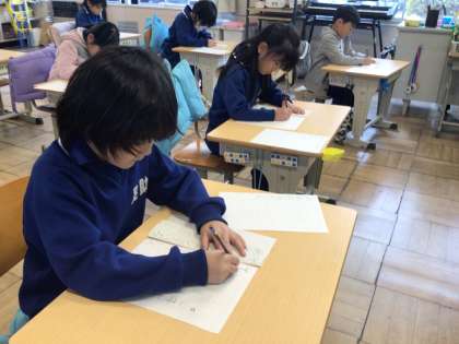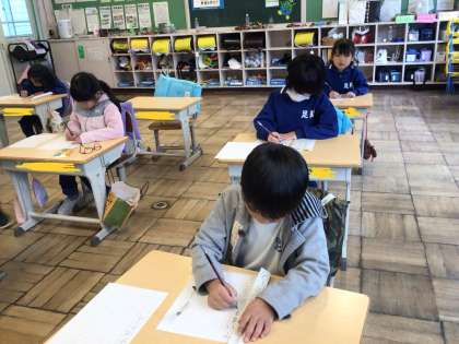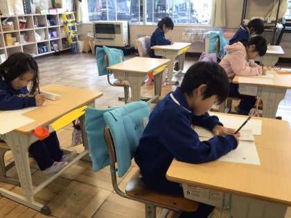 1年生 書き初め練習 公開日 2024/12/06 更新日 2024/12/06 各学年から 12月6日(金)、1年生は初めて挑戦する書き初めの練習をしていました。 お手本の字をゆっくりなぞっっていきます。「はみ出ちゃった」と言いながらも、鉛筆をしっかり持って、力強くなぞっていました。