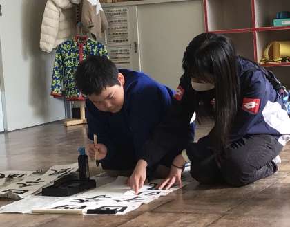 わくわく 書き初めの練習 公開日 2024/12/09 更新日 2024/12/09 各学年から 12月9日(月)、わくわく学級さんは、教室で書き初めの練習です。一字ずつ、形を確認しながらていねいに書いていました。