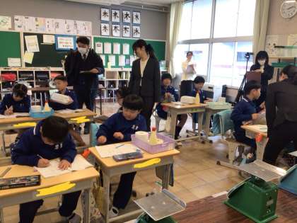 3年生 授業研究 算数「重さ」 1 公開日 2024/12/09 更新日 2024/12/09 各学年から 12月9日(月)、3年生が算数の授業研究を行いました。今までの学習からものの重さを予想し、いろいろなはかりを適切に使って重さを測る学習の様子を、全校の先生が参観しました。