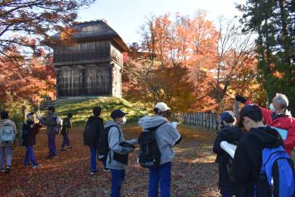 12月10日(火)、6年生が社会の学習で、2回目の足助城に行ってきました。前回は暑かったので、バスで行きましたが、今回は徒歩です。