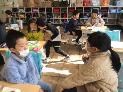 2年生 国語 人がすることをあらわすことば 公開日 2024/12/10 更新日 2024/12/10 各学年から 12月10日(火)、2年生は、主語をいろいろ変えて、文を作っていました。 友達と相談して、文を考えていきます。たくさん言葉が浮かんで、みんな意欲的に手を挙げて、発言していました。