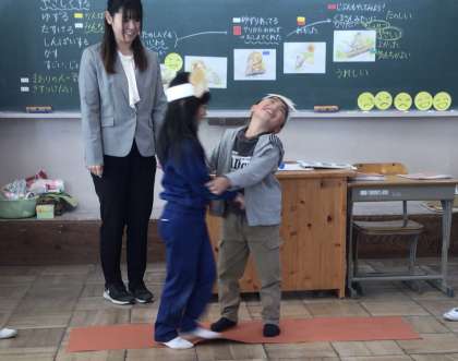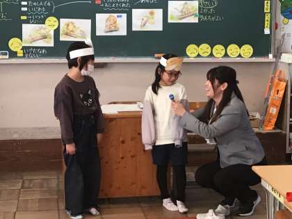 いじわるをしていたおおかみの気持ちがいつ変わったのかを、タブレットの発表ノートで見合ったり、役割演技でおおかみとうさぎの気持ちを考えたりしながら、親切は、する子もしてもらった子もいい気持ちになることに気づきました。