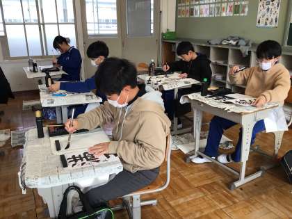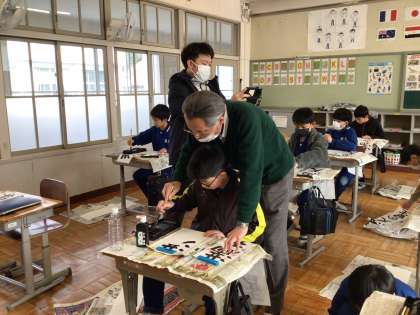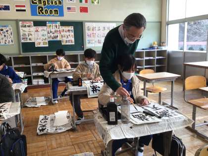 6年生 書き初めの練習 書写ボランティアの先生と 2 公開日 2024/12/13 更新日 2024/12/13 各学年から そのあとは、手を取って一緒に書いていただきました。筆を動かす感覚をつかめるといいですね。