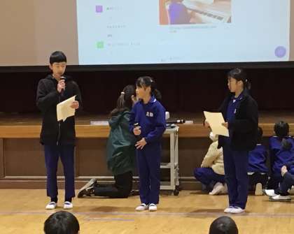 情報委員会 「出でよ あすっこヒーローズ」4 公開日 2024/12/16 更新日 2024/12/16 学校の特色ある活動 最後はピアノ演奏です。朝の講堂に優しいメロディーが流れました。 今回も、あすっこの素晴らしいことをたくさん知ることができました。情報委員会さん、ありがとう。