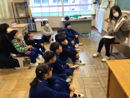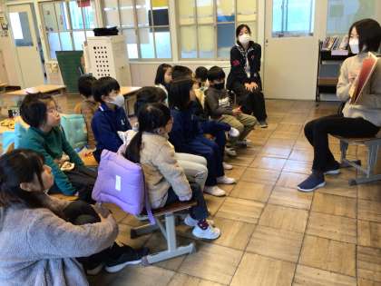 12月19日(木)、朝の活動は読み聞かせです。今の季節にぴったりなどをお話の読み聞かせもありました。