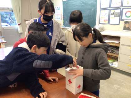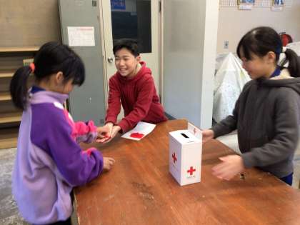 運営委員会 赤い羽根募金最終日 公開日 2024/12/20 更新日 2024/12/20 特別活動 12月20日(金)、今日は赤い羽根募金の最終日でした。運営委員会の朝の放送の呼びかけにたくさんの子が募金に来ていました。みなさん、ご協力ありがとうございました。