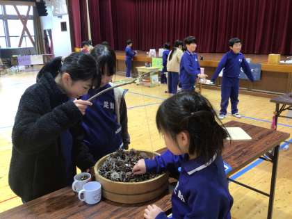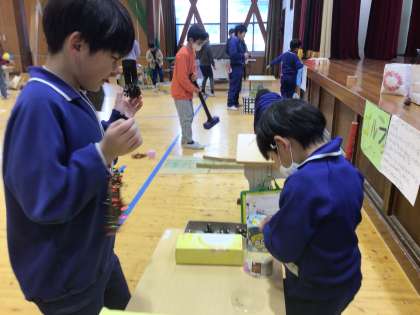 12月20日(金)、1年生があすっこタイムに、講堂で第2回目の「ちびあすまつり」を行いました。
