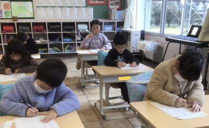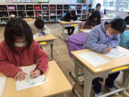 2年生は、硬筆2回目です。お手本を見ながら、落ち着いて取り組んでいます。
