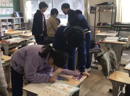 5年生 算数 こみぐあいを考えよう 公開日 2025/01/20 更新日 2025/01/20 各学年から 1月20日(月)、5年生の算数の様子です。面積あたりの人数について、どれくらい混んでいるかをそれぞれ考えます。ノートに自分の考えを書いた後、互いの考えを見合って、わからないことは聞いていました。さりげない会話の中にヒントが出てきて、みんなでの学習になりました。
