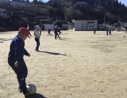 3・4年生 体育 サッカー 公開日 2025/01/22 更新日 2025/01/22 各学年から 1月22日(水)、3・4年生の体育はサッカーです。基本のパス練習では、相手からのボールを一度止めてから、インサイドで蹴っていました。3ポイントを意識して、30回上手に続けることができました。