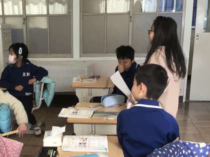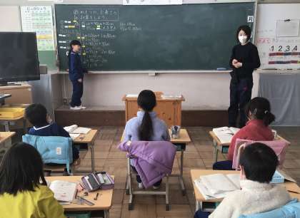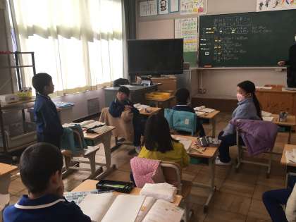 1月22日(水)、2年生は長さの学習です。メートル、センチメートルが混じった長さの足し算や引き算を解きます。どうしてその答えになるかも、みんなの前で説明していました。