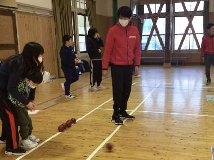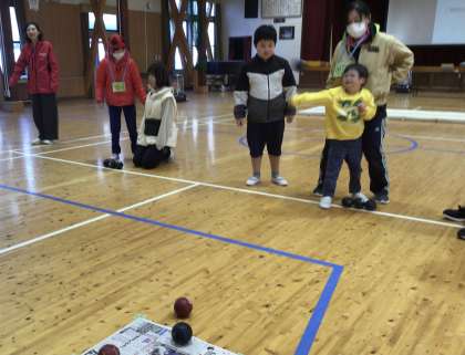 わくわく パラスポーツ交流事業 2 公開日 2025/01/24 更新日 2025/01/24 各学年から 続いて、ボッチャの体験をしました。両側から球を投げ、真ん中の新聞紙によりたくさん入れた方が勝ちのルールです。なかなかうまく入らず、決まった時は大喜びでした。