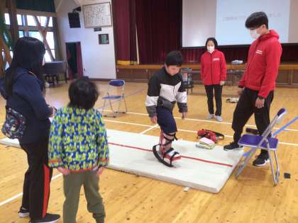 わくわく パラスポーツ交流事業 3 公開日 2025/01/24 更新日 2025/01/24 各学年から ボッチャ体験の間に、義足体験もさせていだだきました。実際に義足をつけて歩いたり、跳ねたりすると、力も必要で、バランスを取るのも難しそうでした。 困難に立ち向かう強さと障がいへの理解を学ぶ、貴重な時間となりました。 佐藤選手、関係者の皆さん、本当にありがとうございました。
