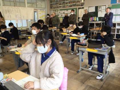 第2回 学校運営協議会 1 公開日 2025/01/27 更新日 2025/01/27 学校行事 1月27日(月)、第2回学校運営協議会を行いました。 お忙しい中、市議会議員さんをはじめ、区長さん、PTA会長さんなどの運営協議会委員の方々に参加していただき、今年度の学校運営についてのご意見をいただきました。 はじめに、子どもたちの学習の様子を見ていだだきました。