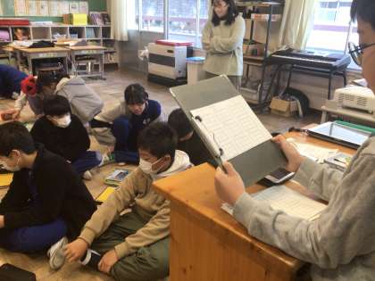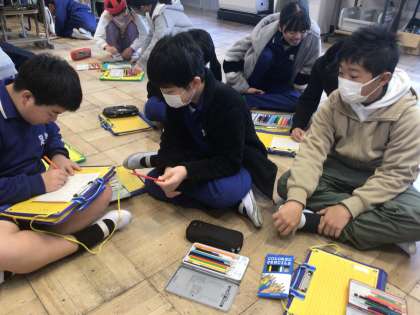 5・6年生 トークトレーニング 公開日 2025/01/30 更新日 2025/01/30 学校の特色ある活動 5・6年生は、マスの中にいろいろな色でいろいろな形を描いてあるものを見て、それを相手にわかるように伝えていました。情報が多いので、正確に聞き取らないとうまくマスにはまりません。聞く力と説明する力を鍛える活動です。