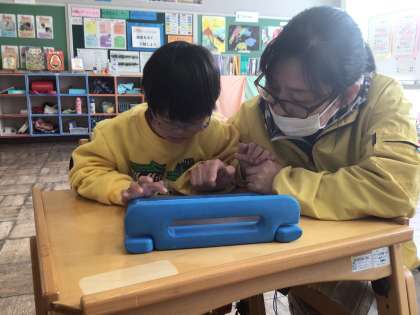 わくわく タブレットでの振り返り 公開日 2025/01/31 更新日 2025/01/31 各学年から 1月31日(金)、わくわくさんは、パラアスリートの佐藤選手との交流学習の振り返りを、学習用タブレットで行っていました。自分の当てはまるところをタッチして送信します。