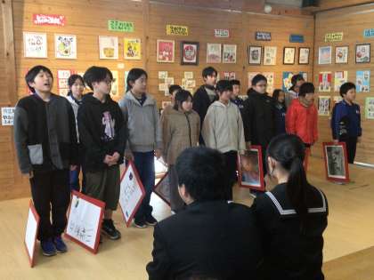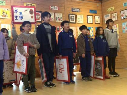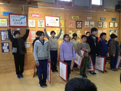 5年生 香嵐渓植樹式 2 公開日 2025/02/04 更新日 2025/02/04 各学年から 次はいよいよ5年生の発表です。総合的な学習の時間で調べてきたことをまとめて、多くのみなさんに伝えることができました。一人一人が大きな声で、堂々と発表していました。途中のクイズにも、みなさんが参加してくださいました。