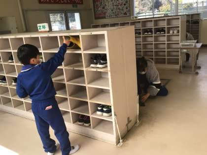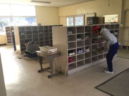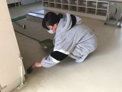 2月5日(水)、5年生の企画「スクールクリーン」の1日目です。すみずみまで掃除する言葉通り、玄関や廊下の隅、手洗い場の角などを一生懸命掃除していました。