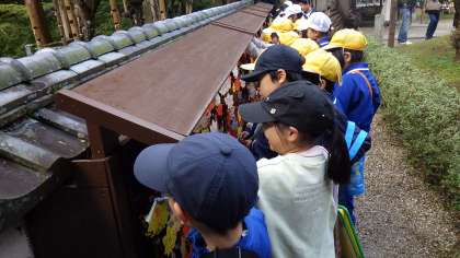 2年生が足助の町探検をしました。足助の町のいろいろなお店やお寺、場所などをめぐり、自分のお気に入り場所を見つけました。