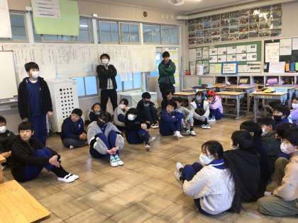 5・6年生 おしゃべりタイム「川か?雪山か?」 公開日 2025/02/06 更新日 2025/02/06 学校の特色ある活動 高学年は、向かい合って対話形式で、学校行事で行くならどちらがいいかを議論しました。 「魚を取って食べられる」「生物調査ができる」など、いろいろな視野からの発言がありました。どんどん発言する姿がさすがでした。
