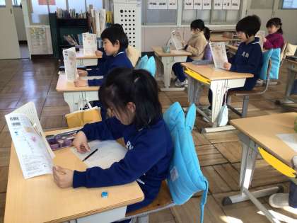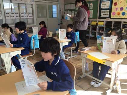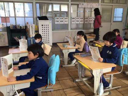 2月12日(水)、1年生は国語の教科書をしっかり持って、音読をしていました。先生の真似をして読んだり、自分で一文ずつ読んだりしています。