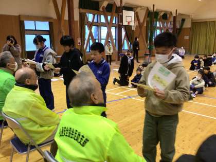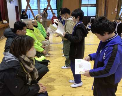 最後は、全校で書いた、感謝のメッセージを代表者が感謝の言葉とともにお渡ししました。