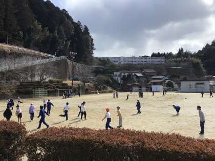 2月20日(木)、今日の運動場もにぎやかです。元気に遊ぶ子どもの姿はいいですね。