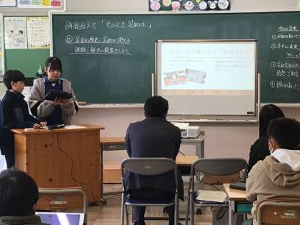 各時代の出来事や今残る建物等について説明したあと、人が減っていることなどを課題と考えて、SNSなどで発信したり、足助の名産を売るアンテナショップを作ったりするなどの提案もありました。