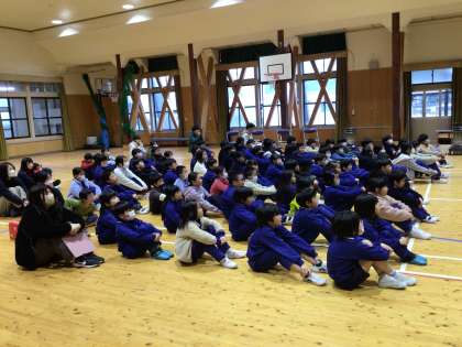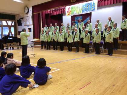 豊声クラブ 演奏会 1 公開日 2025/03/03 更新日 2025/03/03 学校行事 3月3日(月)、豊声クラブの方たちが足助小学校で、素晴らしい歌を聞かせてくださいました。 最初に響いた、男声合唱の力強い歌声に、ぐっと惹きつけられた子どもたち。「春が来た」「コンドルが飛んでいく」など、子どもたちが知っている歌を次々と歌ってくださり、子どもたちは熱心に聞き入りました。