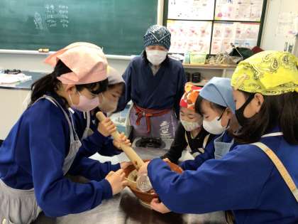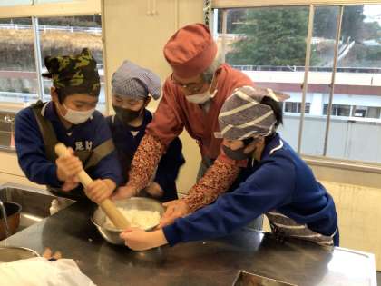 4年生 総合的な学習 五平餅づくり 1 公開日 2025/03/04 更新日 2025/03/04 各学年から 3月3日(月)、地域講師さんに来ていただき、4年生が昨年仕込んだ手作り味噌を使って、五平餅を作りました。 まずは、ご飯を半殺しにして、形にしていきます。