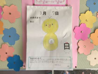 3月7日(金)、児童玄関のカウントダウンです。卒業に向けての掲示になりました。