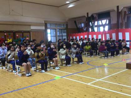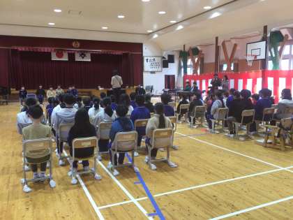 3月12日(水)、6年生と1から5年生が初めて一緒に卒業式の練習をしました。