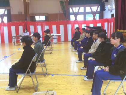 卒業式 合同練習 2 公開日 2025/03/12 更新日 2025/03/12 学校行事 互いに緊張感をもって、いい式にしようと練習に取り組みました。 来賓の方々の挨拶の場面では、先生方が代わりに6年生との思い出や卒業に向けての思いをお話ししました。