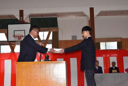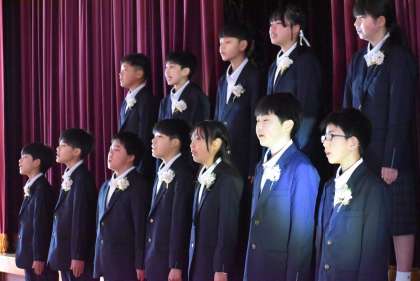 卒業式 4 公開日 2025/03/24 更新日 2025/03/24 学校行事 来賓の方々にも祝っていただきました。 暗い中での、思い出の詩や歌でしたが、在校生も大きな声でしっかりと思いを伝え、卒業生も自分の気持ちを堂々と伝え切りました。
