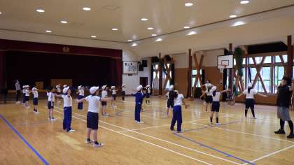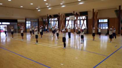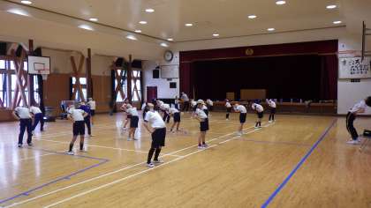 運動会に向けて、ラジオ体操の練習をしました。しっかり腕を伸ばす、動きを止めるなどに注意しながら練習しました。