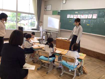 足助もみじこども園の先生方が、1年生の様子を見にきてくださいました。卒園してまだ1ヶ月ですが、勉強に前向きに取り組む姿を喜んでみえました。