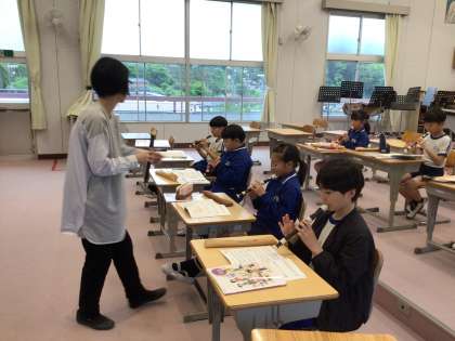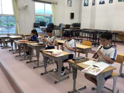 「さくらさくら」を歌ったり、リコーダーで「なべなべ」を演奏したり、音楽を楽しんでいます。