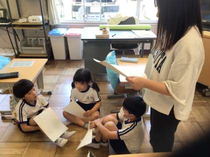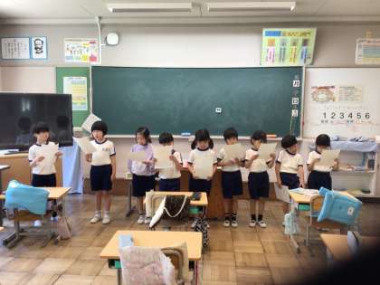 1年生との学校探検に向けて、流れを練習をしています。はきはき言える2年生。本番が楽しみです。