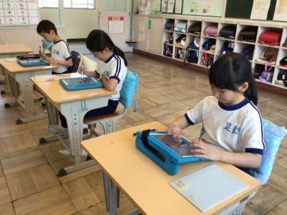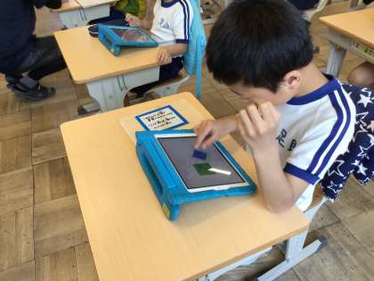 4/30 3年生算数科「学習用タブレットを使って」 公開日 2025/04/30 更新日 2025/04/30 各学年から 九九のトライ、タングラム、ビノバ等アプリを使って、それぞれ学習を進めていました。自分の得意や苦手を学習用タブレットを活用して伸ばすのもいいですね。