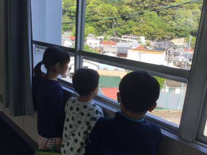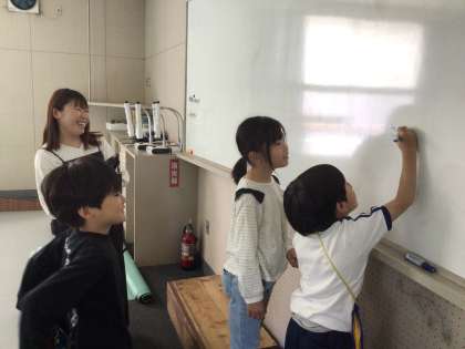 5/1 1・2年「学校探検」2 公開日 2025/05/01 更新日 2025/05/01 各学年から ワークスペースから、足助まゆみこども園が見え、「ぼく、あそこに通っていたよ。」と教えてくれました。 また、大きなホワイトボードに自分の名前を書き、「上手に書けたね」と褒めてもらっていました。
