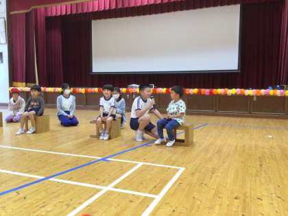6年生が企画して行われた1年生を迎える会。最初は1年生の自己紹介を行いました。