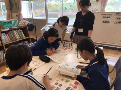 「俳句とは?」「愛知県の人口は?」など、クイズの答えを見つけるために、適切な資料を探す学習に取り組みました。