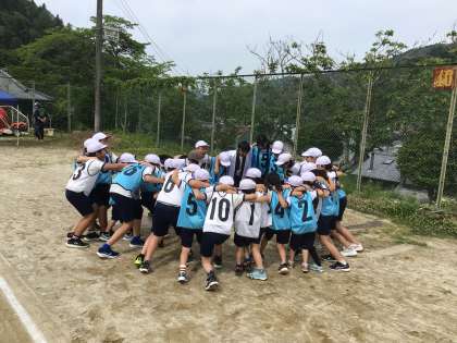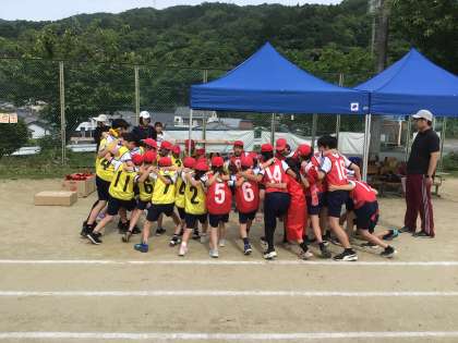 予行練習前、各団で円陣を組んで気合いをいれています。