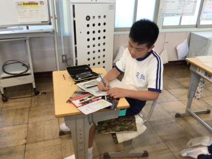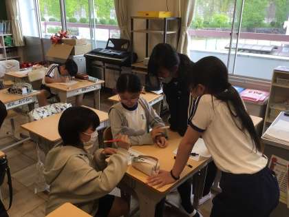級訓のデザインを考える子、係の掲示物を作る子、それぞれ楽しそうに活動に取り組んでいました。