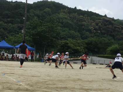 高学年の競遊「竹取物語」。1本の竹をめぐり、最後まであきらめず闘いました。