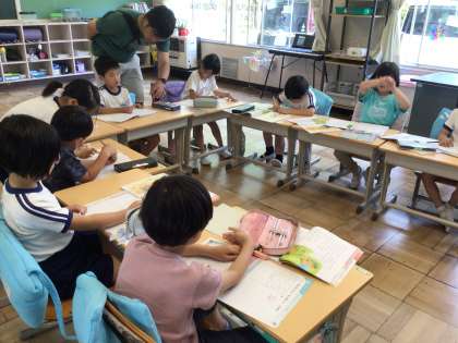 5/20 2年生 道徳科「ぽんたとかんた」 公開日 2025/05/20 更新日 2025/05/20 各学年から 担任の先生が出張なので、今日は田中先生と勉強しました。 お話を通して、よいことと悪いことについて考えました。 4時間目でしたが、積極的に自分の考えを発表していました。