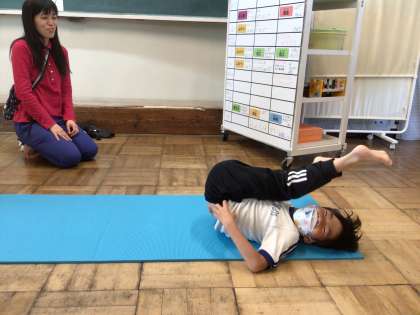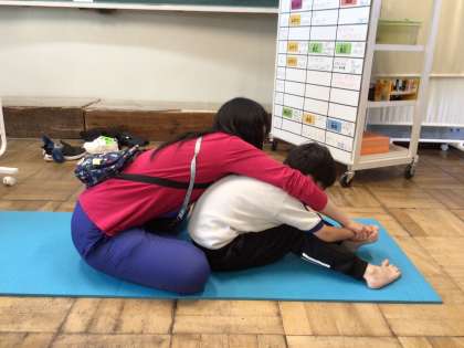 癒しの音楽を聴きながら、身体をリラックスさせています。得意技V字バランスも披露してくれました。
