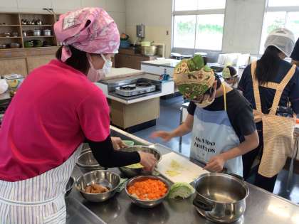 5/21 わくわく学級「調理実習」 公開日 2025/05/21 更新日 2025/05/21 各学年から 少し遅くなりましたが、「こどもの日を楽しもう」というテーマで調理実習をしています。 今日のメニューは、オムライス、スープ、野菜炒めとデザートです。 野菜を洗ったり、玉ねぎの皮をむいたりする係、包丁で切る係、それぞれの役割を頑張っていました。