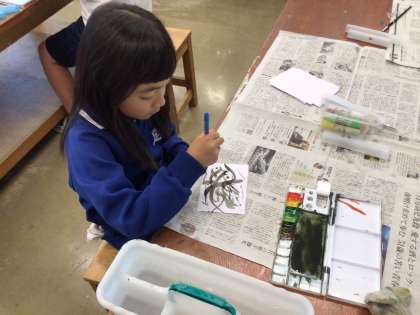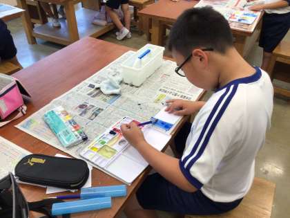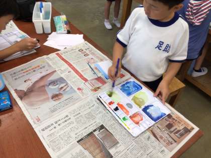 水で薄めた絵の具を塗っています。どんな絵ができるでしょうか?